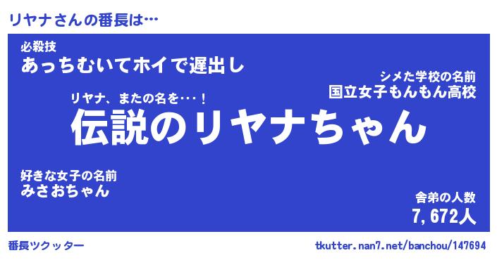 | 意味不明あだ名 | 『ペロリンリヤナ』『リヤナフォーエバー』 |