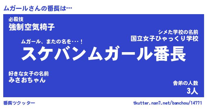 | ポケモン風あだ名 | 『ムガチュウ』『ムガーダネ』 |