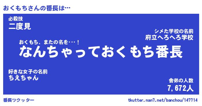 | 肩書あだ名 | 『おくもち店長』『おくもち総理大臣』 |