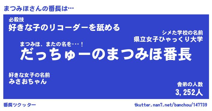 | 伝説のあだ名 | 『伝説のスナイパーまつみほ』 |