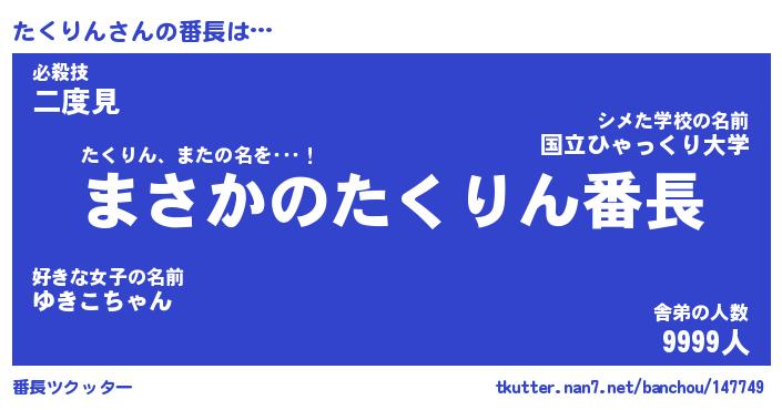 | 肩書あだ名 | 『たくりん店長』『たくりん総理大臣』 |
