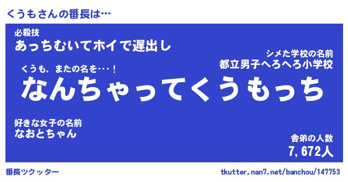 | ヒーロー風カッコイイあだ名 | 『スーパークウモ』『ウルトラくうもマン』 |