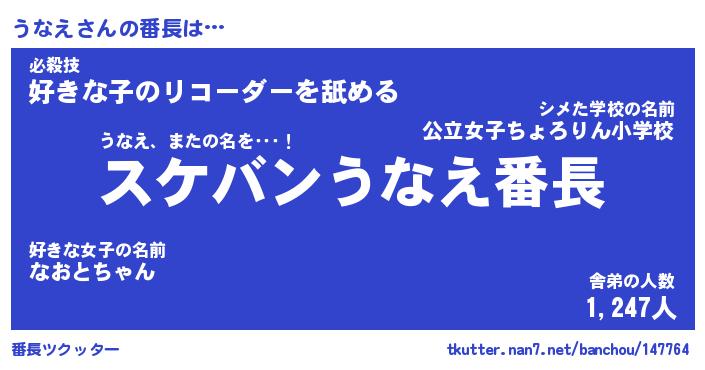 | 肩書あだ名 | 『うなえ社長令嬢』『うなえ国家主席』 |