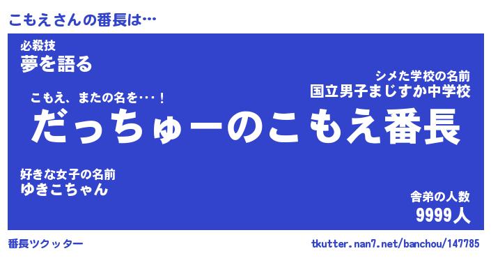 | 肩書あだ名 | 『こもえ御曹司』『こもえ総理大臣』 |