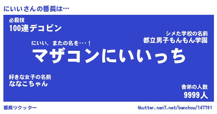 | ヘコむあだ名 | 『にいふぇ~』『つくし』『にいお』 |