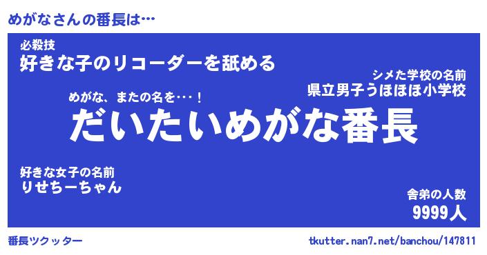 | 意味不明あだ名 | 『ペロリンめがな』『めがなフォーエバー』 |