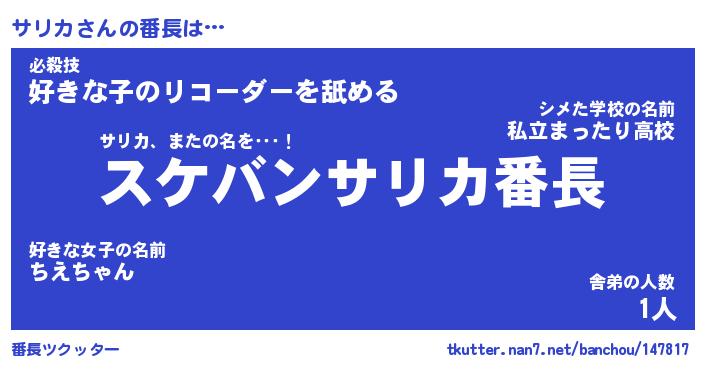| 意味不明あだ名 | 『ペロリンサリカ』『サリカフォーエバー』 |