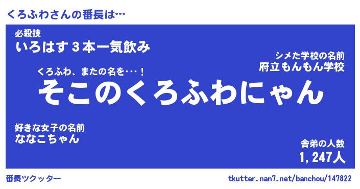 | 意味不明あだ名 | 『ペロリンくろふわ』『永久保存くろふわ』 |