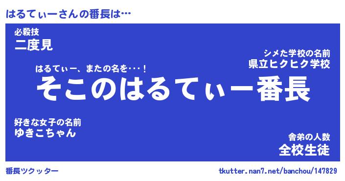 | ファンタジー風あだ名 | 『ハルフェル』『エターナルハルティーー』 |
