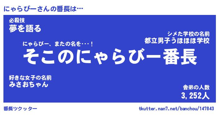 | 肩書あだ名 | 『にゃらびーCEO』『にゃらびー大統領』 |
