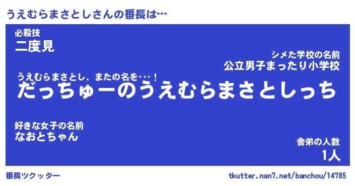 | 肩書あだ名 | 『うえむらまさとし御曹司』 |