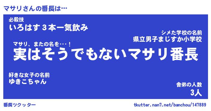 | 2回繰り返すあだ名 | 『マサマサ』『ママササ』『おらおら』 |