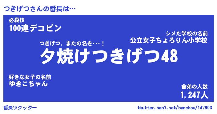 | ファンタジー風あだ名 | 『ツキフェル』『エターナルツキゲツー』 |