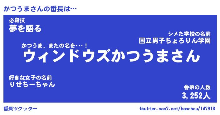 | ヒーロー風カッコイイあだ名 | 『スーパーカツウマ』『幻影騎士カツ』 |