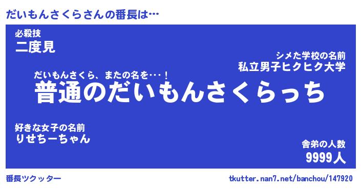 | 胡散臭い通販商品みたいなあだ名 | 『モテモテ間違いなし水晶球…その名も「だいもんさくら」』 |