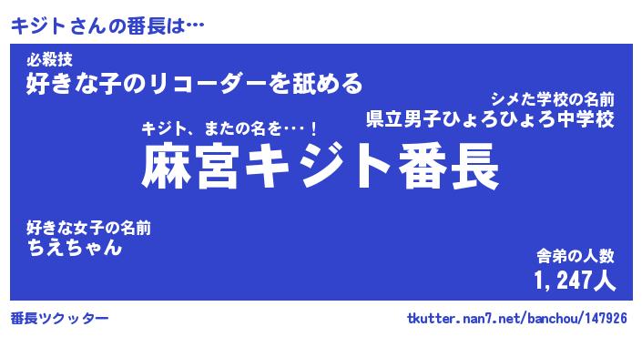 | ヒーロー風カッコイイあだ名 | 『スーパーキジト』『ウルトラキジトマン』 |