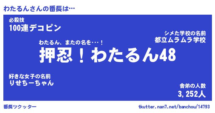 | ピコ太郎風あだ名 | 『ワコ四郎』『ピワ四郎』『ワタ四郎』 |
