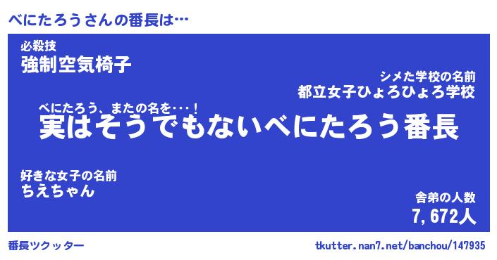 | 2回繰り返すあだ名 | 『べにべに』『べべにに』『ぬるぬる』 |