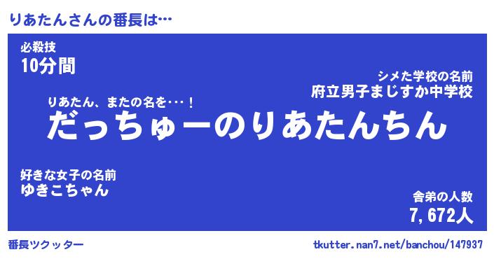 | 意味不明あだ名 | 『ペロリンりあたん』『永久保存りあたん』 |