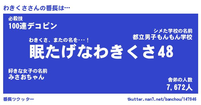 | ヒーロー風カッコイイあだ名 | 『スーパーワキクサ』『黄金騎士ワキ』 |
