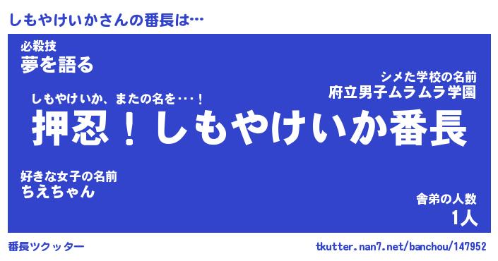 | 男性向けラノベタイトル風あだ名 | 『シモヤケイカアートオンライン』 |