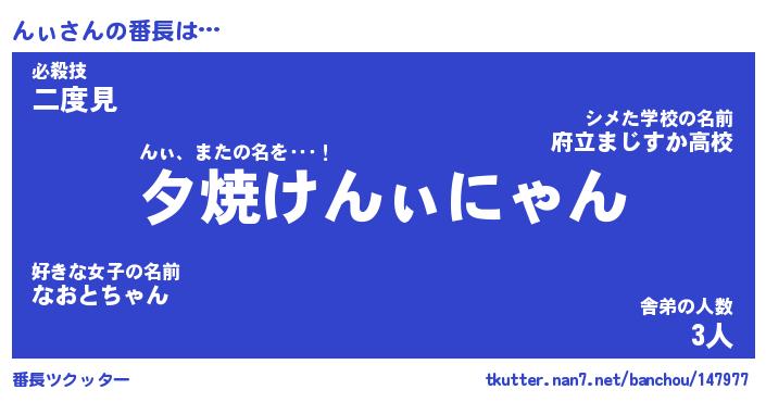 | ヘコむあだ名 | 『んぃにー』『酢こんぶ』『んぃ太郎』 |
