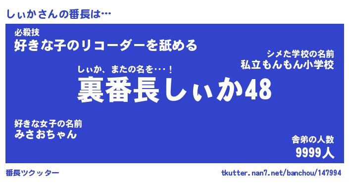 | ヒーロー風カッコイイあだ名 | 『スーパーシィカ』『ウルトラしぃかマン』 |