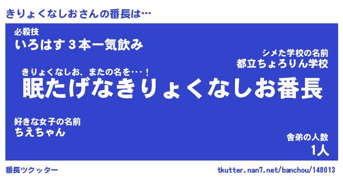 | ヒーロー風カッコイイあだ名 | 『スーパーキリョクナシオ』 |