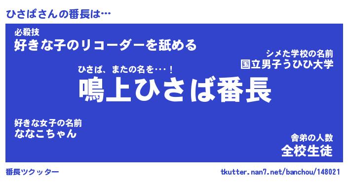 | ファンタジー風あだ名 | 『ヒサフェル』『エターナルヒサバー』 |