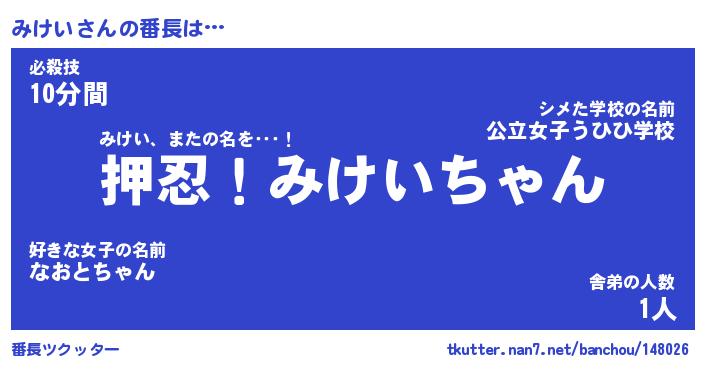 | ヘコむあだ名 | 『みけっふぃ~』『牛乳』『みけ太郎』 |