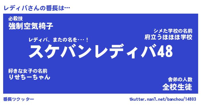 | ヒーロー風カッコイイあだ名 | 『スーパーレディバ』『暗黒騎士レデ』 |