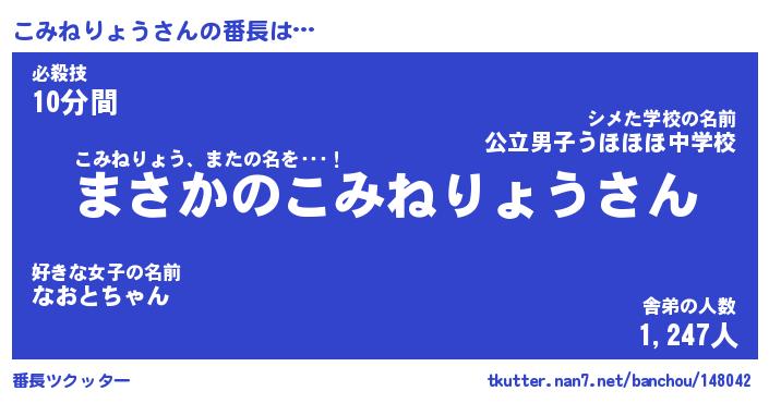 | ヘコむあだ名 | 『こみにー』『酢こんぶ』『こみ太郎』 |