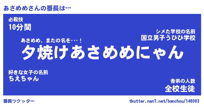 | ヒーロー風カッコイイあだ名 | 『スーパーアサメメ』『暗黒騎士アサ』 |