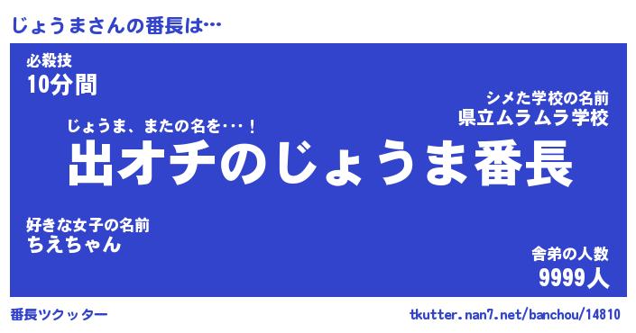 | 意味不明あだ名 | 『ペロリンじょうま』『永久保存じょうま』 |