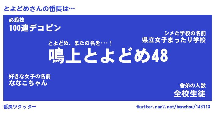 | 肩書あだ名 | 『とよどめ御曹司』『とよどめ国家主席』 |