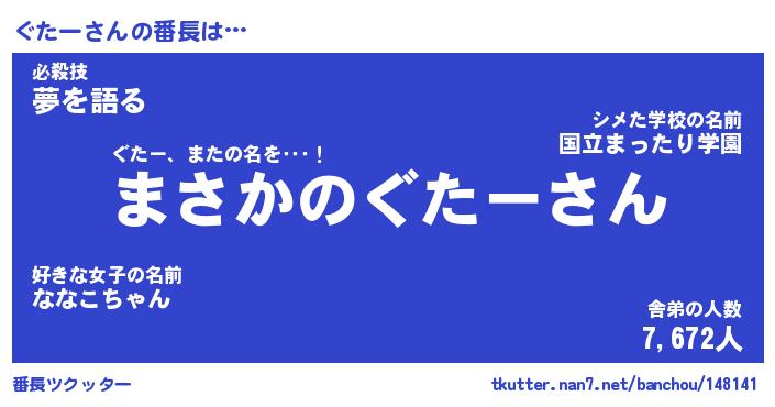 | 伝説のあだ名 | 『伝説のスナイパーぐたー』 |