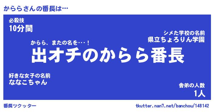| ピコ太郎風あだ名 | 『カコ一郎』『ピカ一郎』『カラ五郎』 |