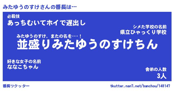 | 肩書あだ名 | 『みたゆうのすけ御曹司』 |