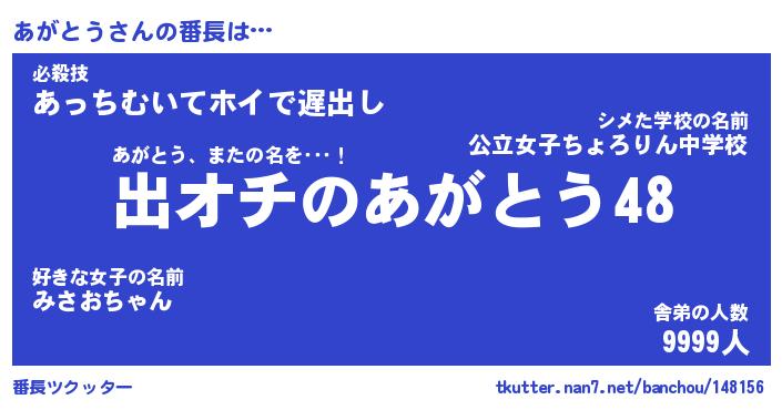 | ヒーロー風カッコイイあだ名 | 『スーパーアガトウ』『天弓騎士アガ』 |