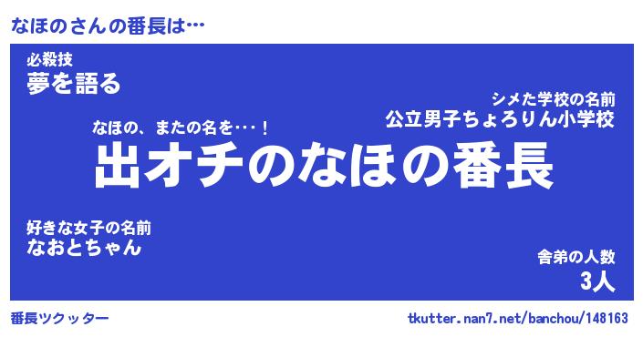 | 肩書あだ名 | 『なほの店長』『なほの総理大臣』 |