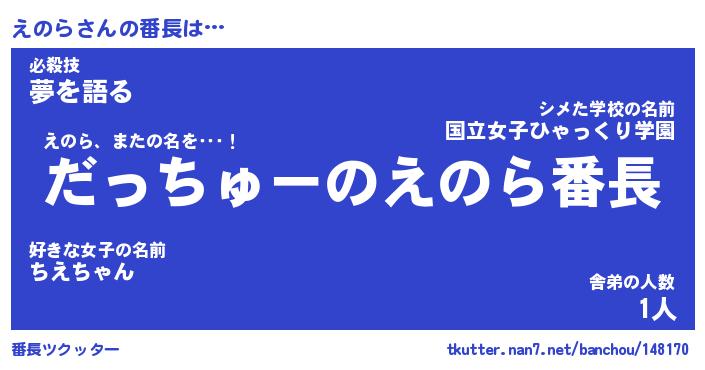 | 意味不明あだ名 | 『ペロリンえのら』『えのらフォーエバー』 |