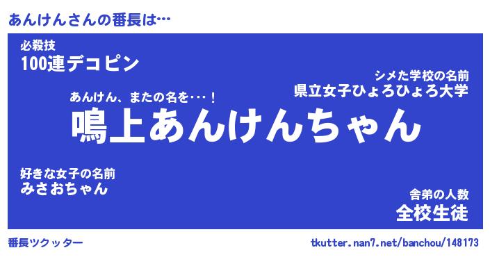 | 意味不明あだ名 | 『ペロリンあんけん』『永久保存あんけん』 |