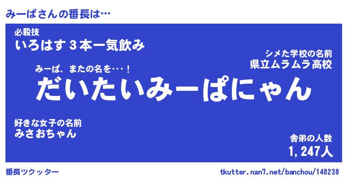| 意味不明あだ名 | 『ペロリンみーぱ』『みーぱフォーエバー』 |