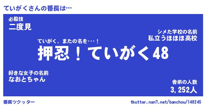 | 肩書あだ名 | 『ていがく御曹司』『ていがく大統領』 |