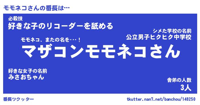 | 意味不明あだ名 | 『ペロリンモモネコ』『永久保存モモネコ』 |