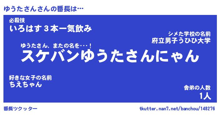 | ヒーロー風カッコイイあだ名 | 『スーパーユウタサン』『黄金騎士ユウ』 |
