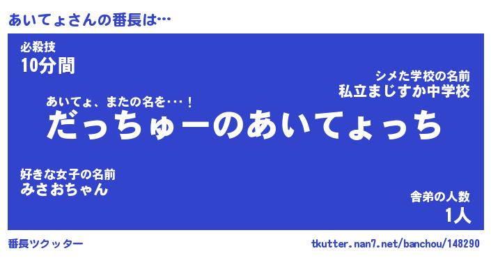 | 伝説のあだ名 | 『伝説のスナイパーあいてょ』 |