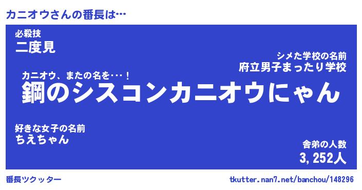 | 肩書あだ名 | 『カニオウ御曹司』『カニオウ大統領』 |