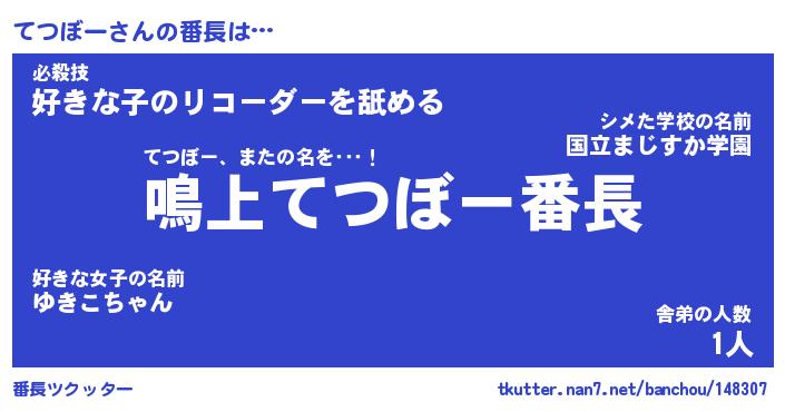 | 意味不明あだ名 | 『ペロリンてつぼー』『永久保存てつぼー』 |