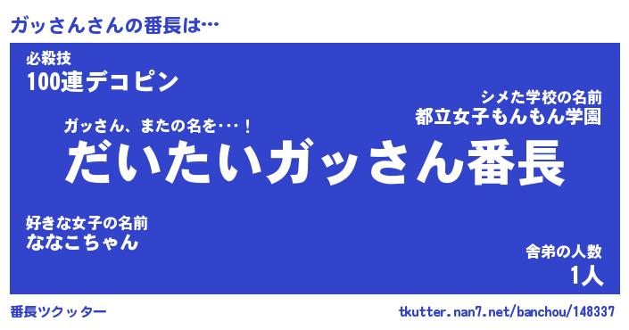 | 意味不明あだ名 | 『ペロリンガッさん』『永久保存ガッさん』 |
